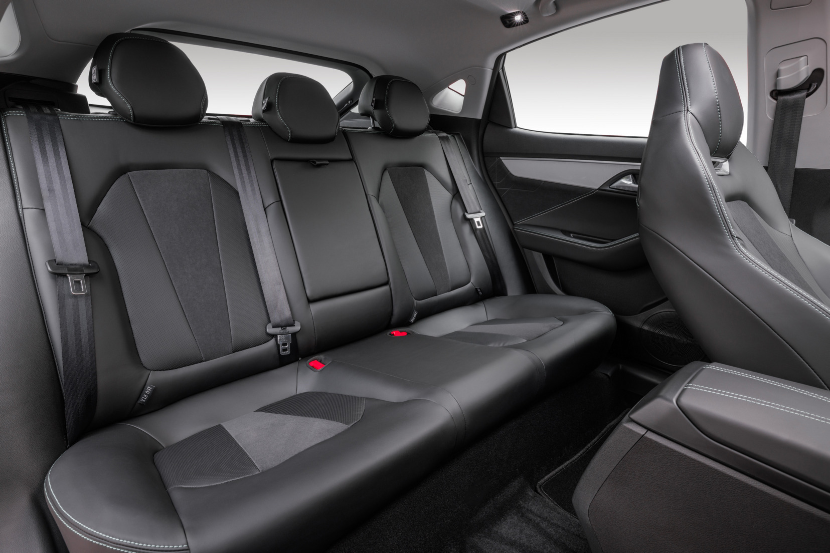 На заднем диване, раз мы начали обзор с кормы, вполне удобно. Во всяком случае, вдвоем. Это позволит немного приспуститься на сидушке вперед, чтобы голова не упиралась в потолок нисходящей назад крыши. Автопроизводитель уловил этот нюанс и предусмотрел в обшивке потолка соответствующую выемку.