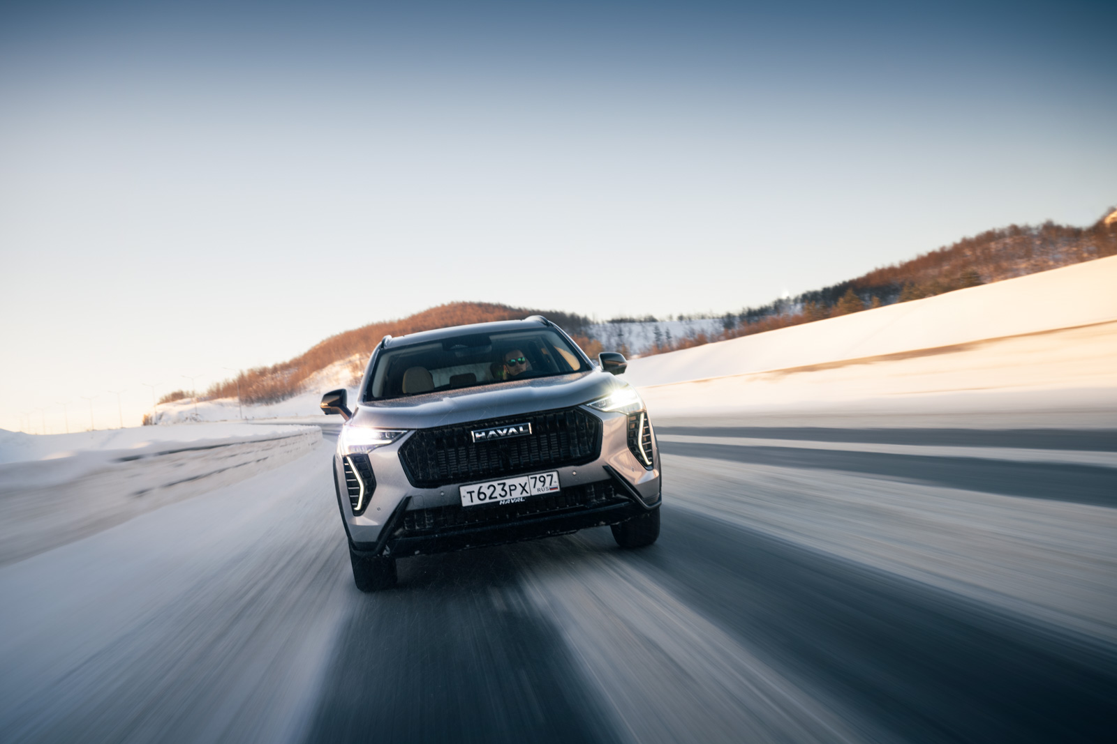 Полный привод добавляет к цене монопривода 150 000 рублей и подключается через муфту BorgWarner – тут всё, как вы знаете. Именно он способен компенсировать недостаток скромного дорожного просвета и легковых ходов подвесок. Уповая на вовремя подключаемые передние колёса, за рулём Jolion можно без димедрола выписывать повороты в режиме скольжения, что называется, управляя заносом. Просто своевременно распрямляете колёса и добавляет газу при выходе из дуги. Для более плавных реакций в настройках можно отыскать режим «Снег», а с уклона не грех скатиться, используя ассистент спуска с горы – работает уверенно и надёжно.