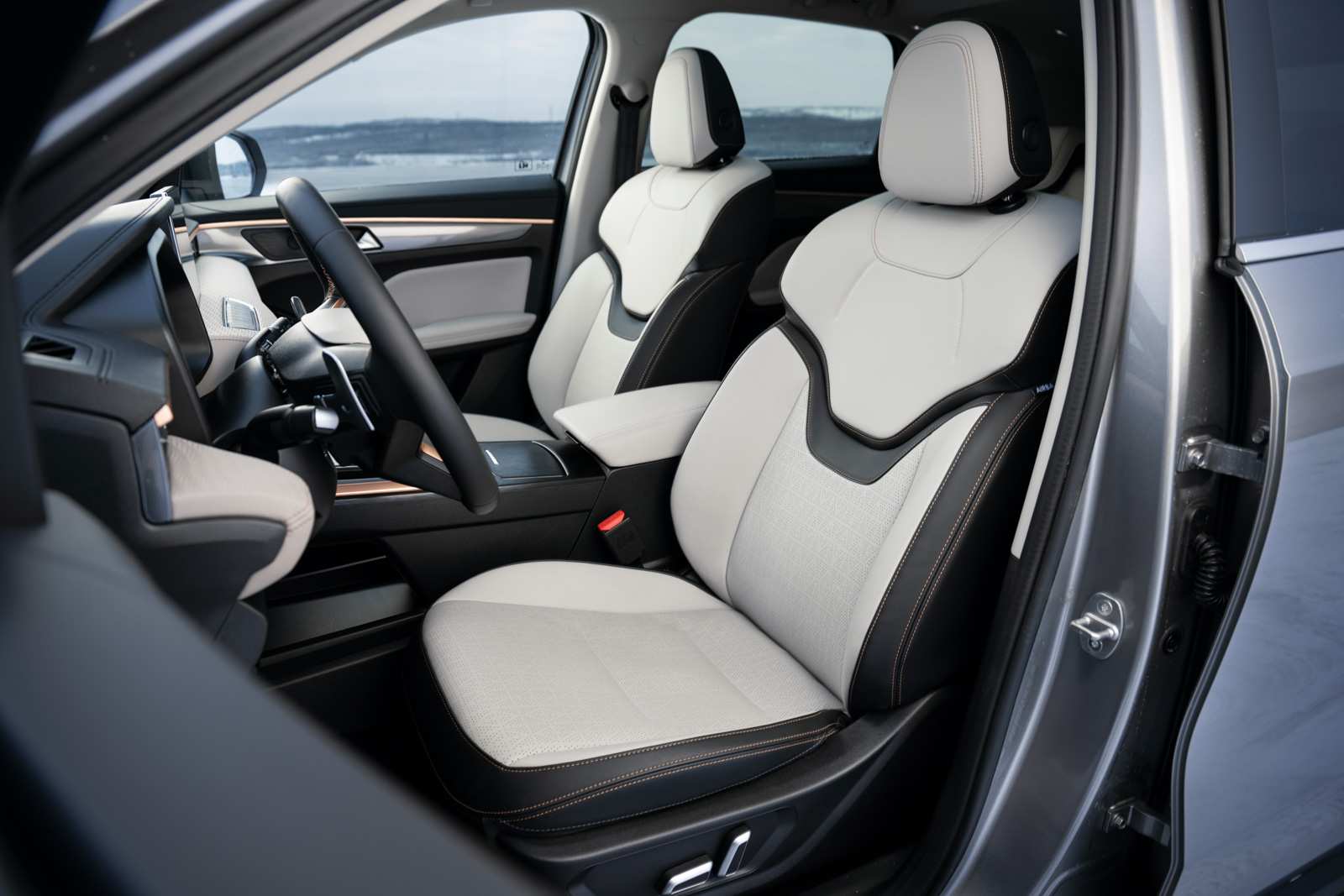 Комплектаций четыре, наиболее интересные функции появляются в третьей по ранжиру версии Premium (2 499 000 рублей). Мы имеем ввиду такие позиции, как колёса R18, двухзонный климат, обогрев задних сидений, кресла из эко-кожи с перфорацией (водительское — с вентиляцией), камеры 360 град., мультимедиа с экраном 12,3 дюйма, приборная панель на 7 дюймов, беспроводная зарядка для смартфона.