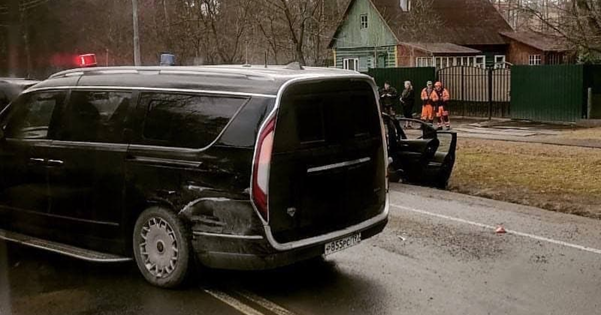 В Москве на Рублево-Успенском шоссе произошла крупная авария. По данным РИА Новости, столкнулись шесть машин. В их числе оказался минивен «Аурус Арсенал» c мигалками.