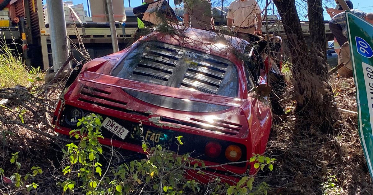 Водитель F40 сбил несколько столбов и вылетел в деревья. Некоторые столбы фактически вырваны из земли — судя по всему, водитель «Феррари» мог превысить скорость.