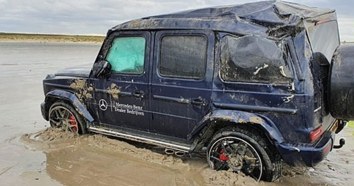 Похоже, что водитель «Мерседеса» не учел, как внедорожник будет вести себя на мокром песке. В какой-то момент «Гелендваген» опрокинулся набок и несколько раз перевернулся.