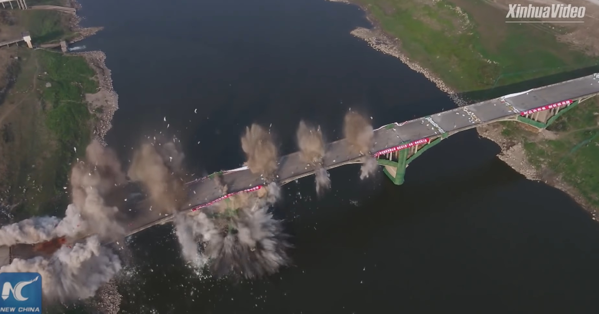 Контролируемым взрывом была уничтожена вся 760-метровая переправа — и даже те части, которые находились над землей. Сперва сдетонировали заряды с одного края моста, а затем в середине и на другом его конце. Процесс уничтожения занял около десяти секунд.