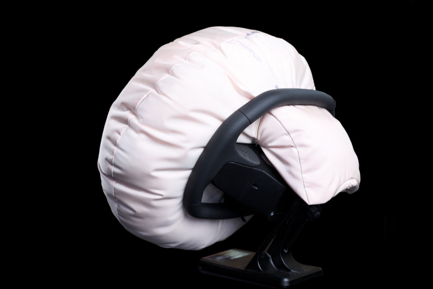 Первой подушкой безопасности, которую начали массово применять на серийных автомобилях, в 1980-х стала водительская. За все годы ее расположение в ступице руля не менялось, однако немецкая компания ZF — один из ведущих производителей систем автомобильной безопасности — придумала новое решение. Концептуальная конструкция предполагает установку эйрбэга на верхней поверхности руля. Таким образом, в случае столкновения подушка выстреливает не строго назад, а под углом вверх, «пролетая» сквозь верхний сегмент руля. И только пройдя между ступицей и верхней частью обода, купол эйрбэга надувается, принимает свои традиционные форму и расположение.