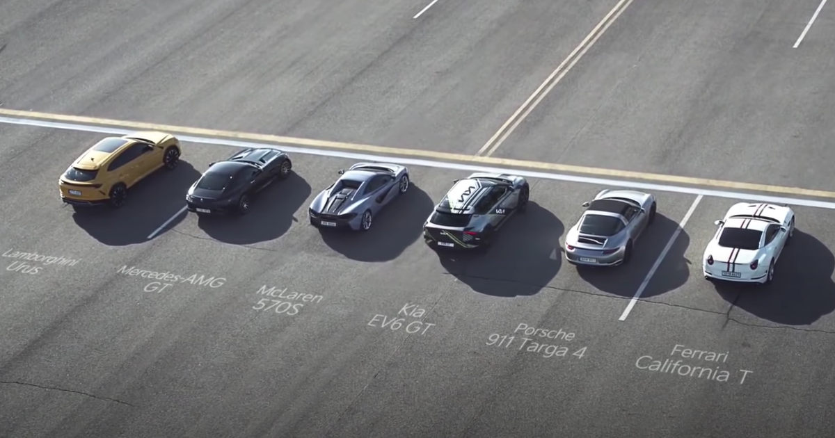 На презентации нового Kia EV6 в спортивной версии GT корейская компания показала дрэг-гонку своего электромобиля против суперкаров.