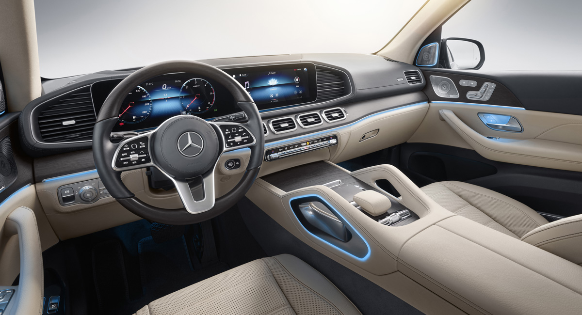 Начальная комплектация Premium включает третий ряд сидений, медиасистему MBUX с навигатором, двухзонный климат-контроль, подогрев всех сидений и руля, камеру заднего вида, панорамную крышу, матричные светодиодные фары, автопарковщик и колеса диаметром 21 дюйм. Версия Premium Plus вдобавок имеет боковые подушки безопасности на втором ряду, вентиляцию передних сидений, камеры кругового обзора и внешние подножки.