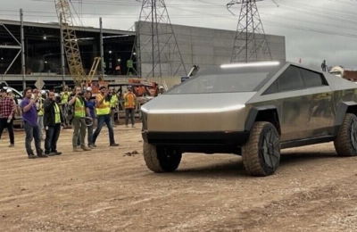 Илон Маск приехал в пикапе Cybertruck на завод в Т...
