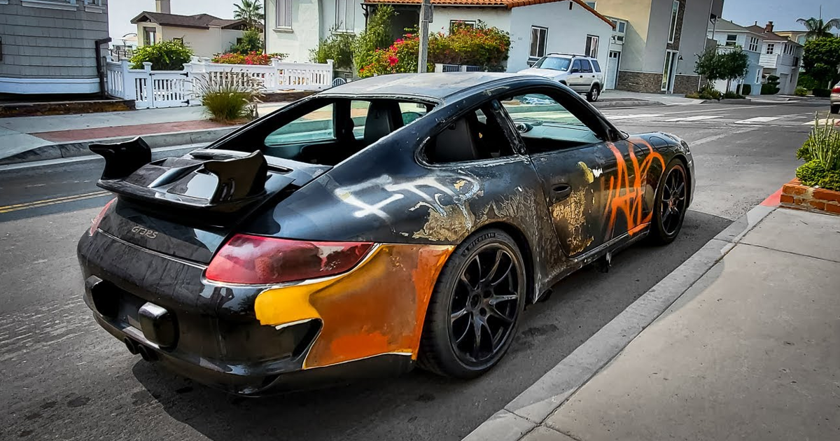 Автомобиль не только изрядно помяли, но еще и подожгли. Тогда в Сети появилось несколько видео с брошенной где-то в Лос-Анджелесе машиной — один из роликов набрал больше 2,5 миллиона просмотров. Спустя четыре месяца блогеры нашли этот «Порше» и показали, что с ним стало.