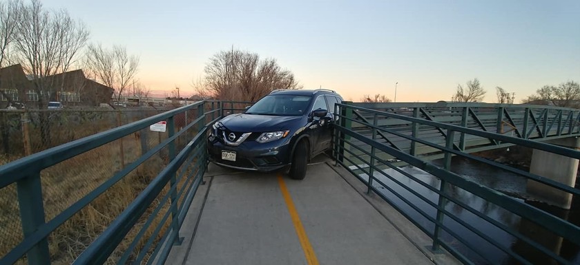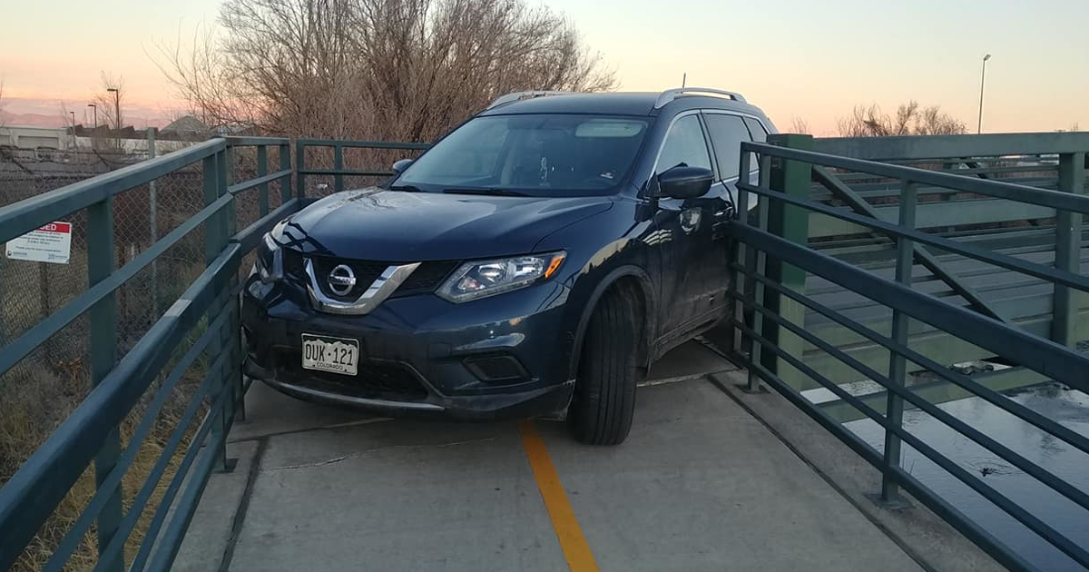 Курьезный случай произошел на этой неделе в штате Колорадо. Водитель «Ниссана» (в США эта модель называется Rogue) каким-то образом заехал на велосипедную дорожку у реки Саут-Платт.