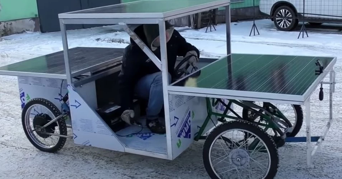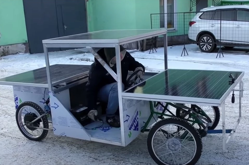 Как рассказал «Комсомольской правде» 23-летний изобретатель, из алюминиевых профилей он сварил кузов и поставил на него колеса от мопеда. А на капот, багажник и крышу уложил солнечные батареи.
